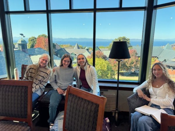 After arriving on campus and eating pizza under the clear sky in the courtyard, students split into workshop groups. In the Miller Room overlooking Lake Champlain, students attended an open mic poetry reading with college students, advised by Professor Jim Ellefson.
